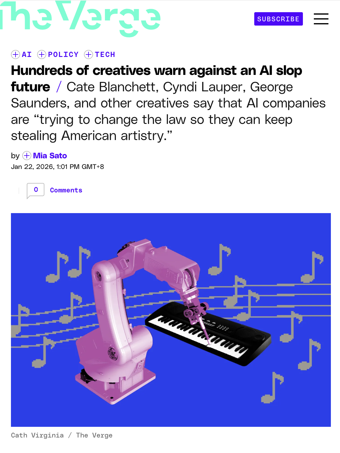 IT之家 1 月 22 日消息,今天下午,据外媒 The Verge 报道,美国约 800 名来自文艺领域的知名人士联合发声,公开反对 AI 公司在内容训练中的行为,直指其构成“规模空前的盗窃”。