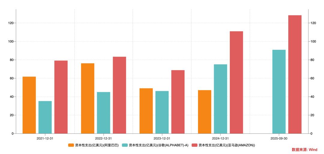 亚马逊、谷歌和阿里巴巴的资本支出变化