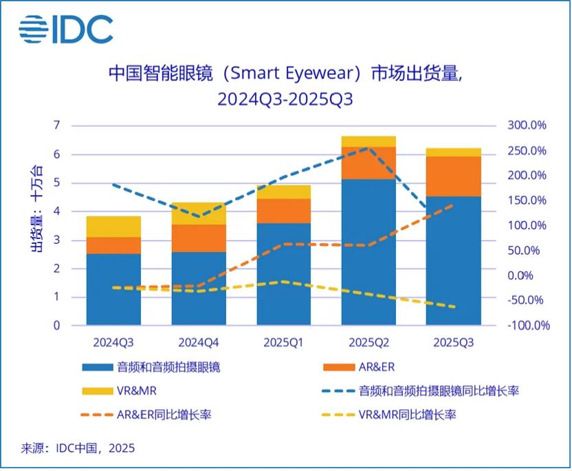 趋势已有所显现。根据IDC数据,2025年上半年,全球智能眼镜市场出货量406.5万台,同比增长64.2%。