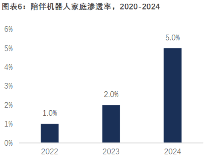 但现实却呈现另一番景象,陪伴机器人全球市场渗透率约为6%,中国情感陪护类机器人的渗透率约5%,市场的接受度并不高。