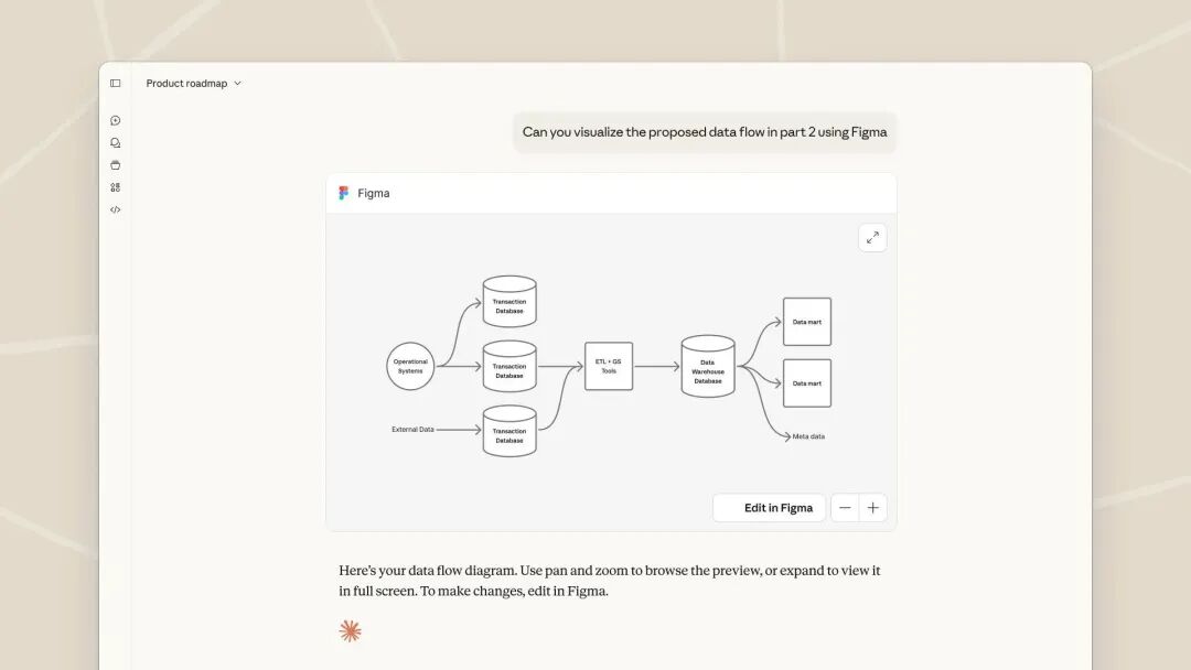 现在用户可以直接在对话中操作 Figma 里的项目|图片来源:Anthropic