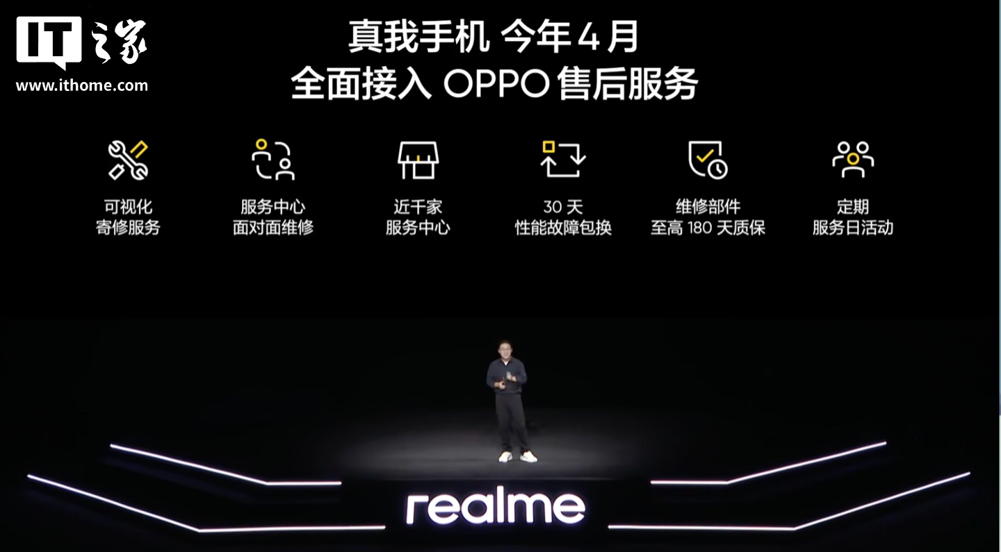 据IT之家此前报道,在 1 月 22 日的真我 realme Neo8 手机发布会中,真我 realme 副总裁、全球营销总裁、中国区总裁徐起宣布,真我手机将于今年 4 月全面接入 OPPO 售后服务。