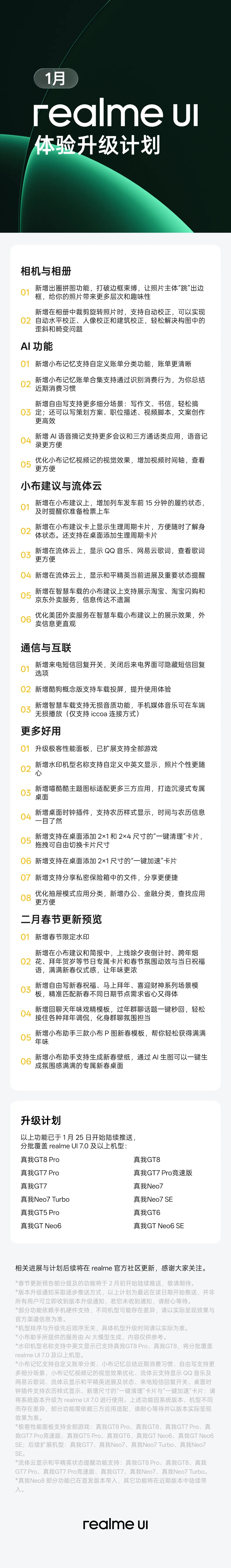 以上功能已于 1 月 25 日开始陆续推送,分批覆盖 realme UI 7.0 及以上机型: