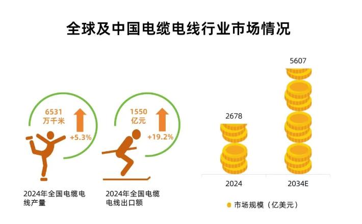 中国作为全球最大电线电缆生产国,2024年产量达6531万千米,预计2025年将增至6800万千米,出口金额达1550亿元,同比增长19.2%,广泛覆盖东南亚、中东和欧洲市场。