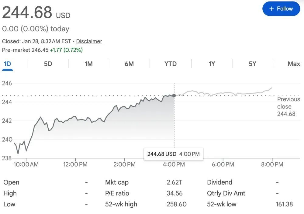 截止昨日美股收盘,亚马逊股价为244.68美元(约合人民币1701.66亿元)。裁员消息发出后,其股价在盘前交易中上涨不到1%。