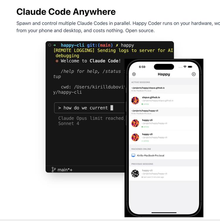 Claude Code 绑定在本机终端上,这意味着你必须坐在电脑前才能与 agent 交互。但 agent 的执行往往是长时间的,而人的注意力是碎片化的,你可能在开会、在通勤、在午休,agent 却在这时遇到了需要人类确认的分支。Happy 把手机变成 Claude Code 的遥控器。它在移动端重建完整的 agent,而是聚焦两件事:远程干预和状态感知你可以通过语音输入快速回应,或者直接在手机上查看当前执行到了哪一步。这改变了人机协作的节奏。