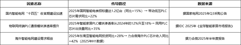 从需求端看,核心驱动因素可分为政策端、场景端和海外市场三类:政策端,国内智能电网“十四五”收官期(2025年)建设加速,国网智能电表招标量同比增长15%,直接带动PLC芯片需求提升22%;场景端,智能家居PLC模块渗透率从12%升至18%,民用市场成为新增长极;海外市场,东南亚智能电网投资同比增长28%,力合微凭借本地化渠道布局(2024年在印尼设立子公司),海外收入同比增长42%。