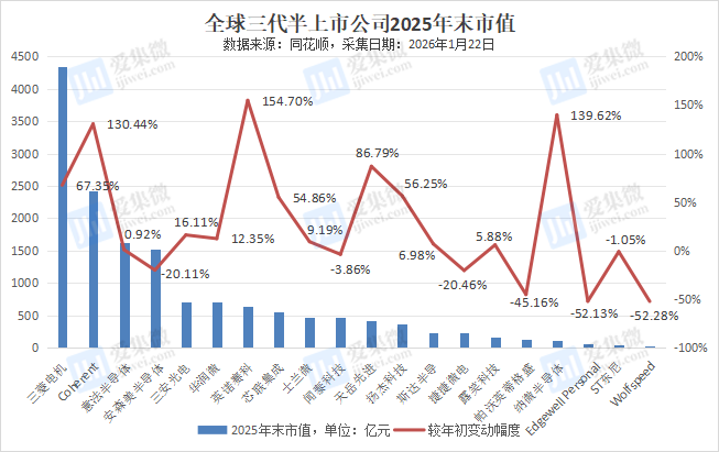 1.全球三代半上市公司市值分化与价值评估:美日仍是主导,中国力量重塑梯队