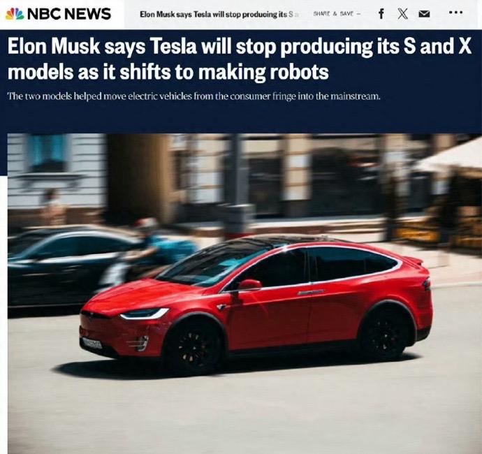 外媒曝马斯克宣布特斯拉将停产 Model S 和 Model X 这两款车。