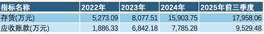 此外,现金流与利润的严重背离敲响了财务健康的警钟。2024年,在公司实现1.42亿元净利润的同时,经营活动产生的现金流量净额却为-7800万元。这种背离与应收账款激增直接相关:2022年至2025年上半年,应收账款账面余额从1997万元激增至1.30亿元,其中仅对拓荆科技的应收款就达7661.12万元。尽管账面货币资金充裕,但激增的应收款和持续的营运资金需求,提示其业绩增长的“含金量”与财务稳健性亟待改善。