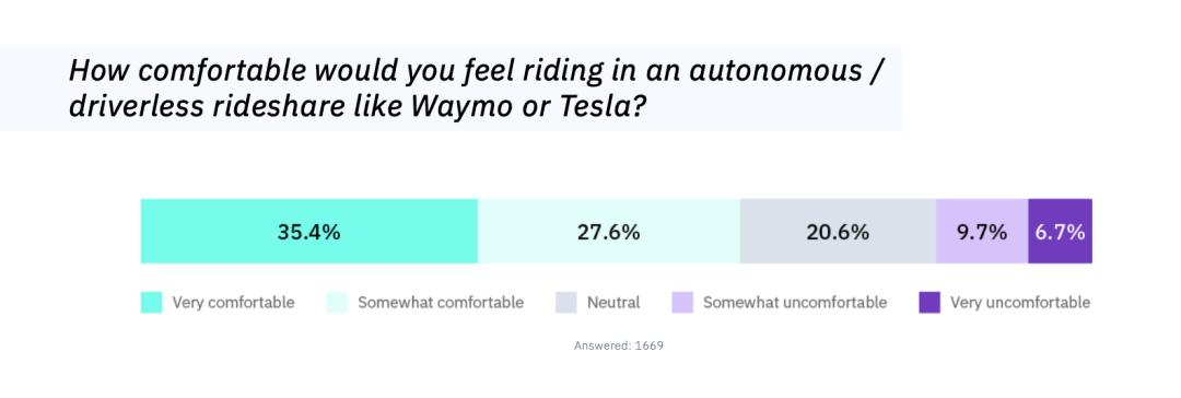 全球实时网约车价格聚合平台Obi公司最新发布的调查数据显示,人们对自动驾驶汽车的接受度显著提高,63%的人表示对自动驾驶汽车感到舒适,而该公司在2025年春季进行的研究中,这一比例仅为35%。