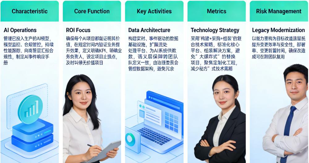我们观察到的最佳结果来自于企业将现代化视为其人工智能和数字化转型战略不可或缺的一部分,而不是将其视为一个独立的“IT项目” 。他们没有冒险进行大刀阔斧的旧系统替换,而是采用了一种循序渐进的方法:逐步剥离旧系统的各个部分,用灵活的服务或云平台取而代之,并在过程中不断取得成效。例如,一家拥有单体订单管理系统的企业,首先通过API“封装”关键功能,使新的AI驱动服务(例如可以查询订单状态的聊天机器人或可以调整订单的算法)能够与旧系统对接,而无需立即替换旧系统。