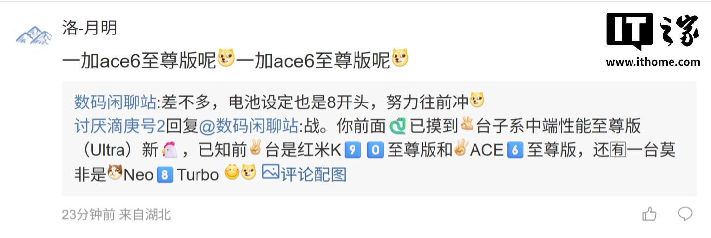 后续有用户在评论区询问:“一加 ace6 至尊版呢