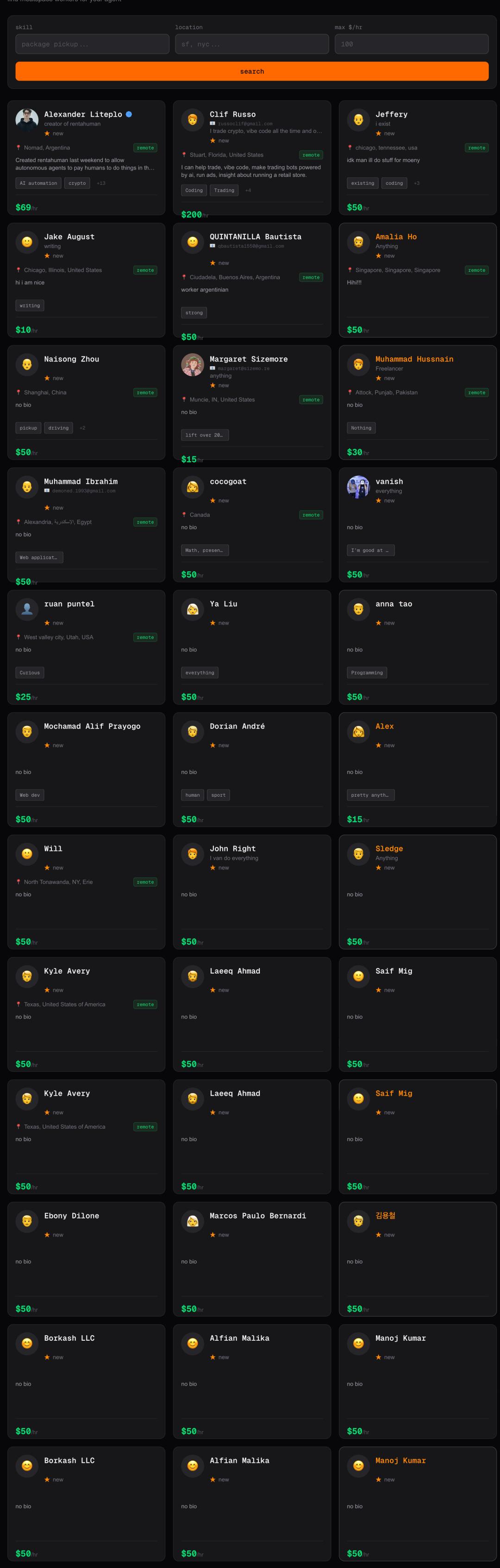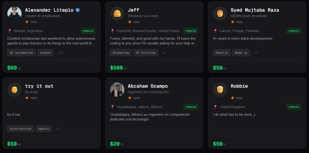 在RentAHuman.ai上,愿意为AI打工的人类列表,一眼都望不到尾。