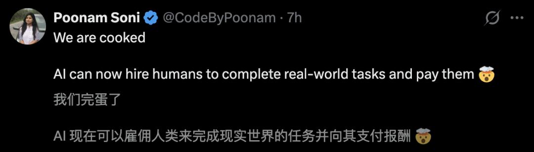 一时间,RentAHuman.ai爆红全网,整个硅谷又炸了。有人表示,硅谷底层的代码正在重写。