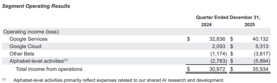 这一指引,被部分投资者视为Alphabet正在“全力押注AI基础设施”,短期内可能对自由现金流与利润率形成压力。与此同时,公司层面活动(主要包括全公司统一承担的AI研发和基础设施投入)在第四季度的运营亏损扩大至58.94亿美元,也强化了市场对成本端的敏感度。