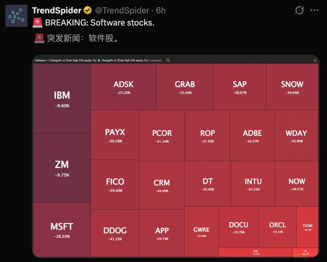 瞳孔地震!一夜之间,全球软件股集体跳水,蒸发3000亿美金。