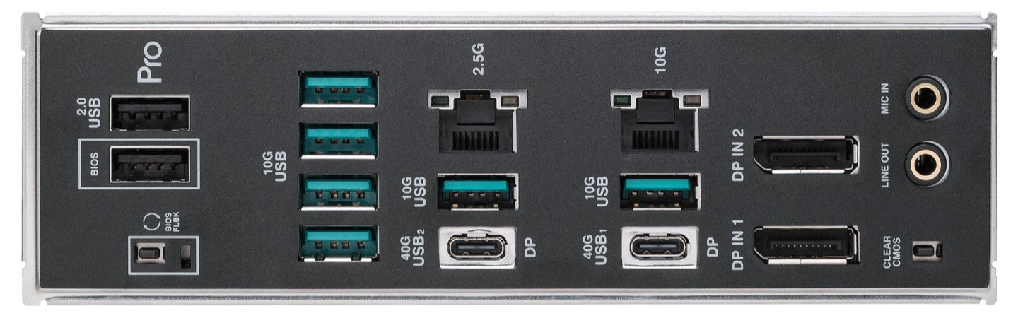 该主板配备 1 个瑞昱 10GbE 万兆有线网卡、1 个英特尔 2.5GbE 有线网卡,预留无线网卡位,搭载瑞昱 ALC1220P CODEC,提供包含 2 个后置 USB4、1 个前置 USB-C 20Gbps 在内的 I/O 扩展。