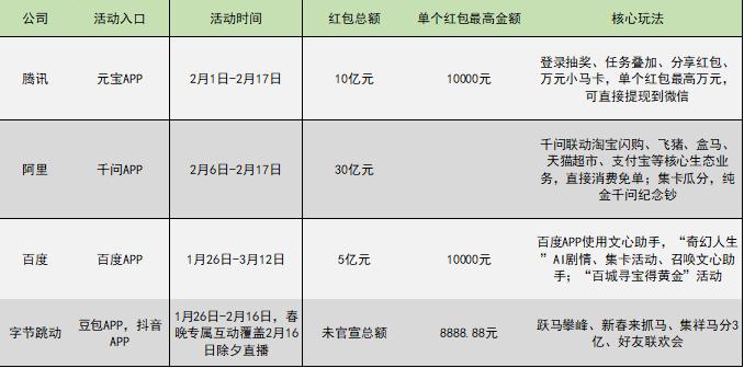 “BATZ”四家巨头狂撒近50亿,试图通过春节这个地球上最大规模的流量洪峰,让自家AI真正成为 “国民级AI应用”。这背后,不仅是资金的投入和流量的博弈,更是AI技术、生态协同、组织能力与战略耐力的全方位比拼 。