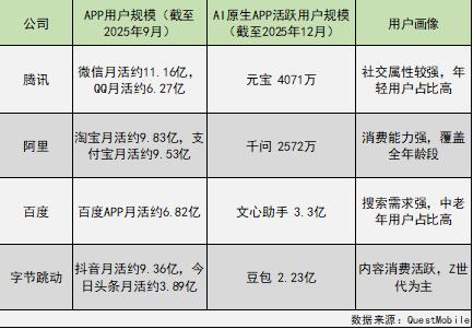 字节豆包在2025年底成为国内第一个日活用户破亿的AI原生应用,规模壁垒已经初步形成,且用户画像偏年轻,互动性较强。