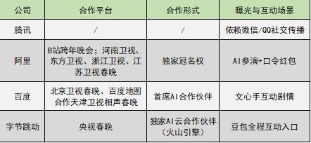 百度合作的北京卫视、天津卫视,区域性较强,覆盖范围偏华北;阿里千问此前拿下B站跨年晚会独家冠名权,现在又冠名河南卫视、东方卫视、浙江卫视、江苏卫视这四台卫视春晚,以年轻用户群体为主,与自身“场景闭环式”玩法契合;腾讯虽然在春晚合作上缺位,但微信、QQ加上元宝派等形成的社交裂变,能有效弥补春晚大屏流量的缺失。