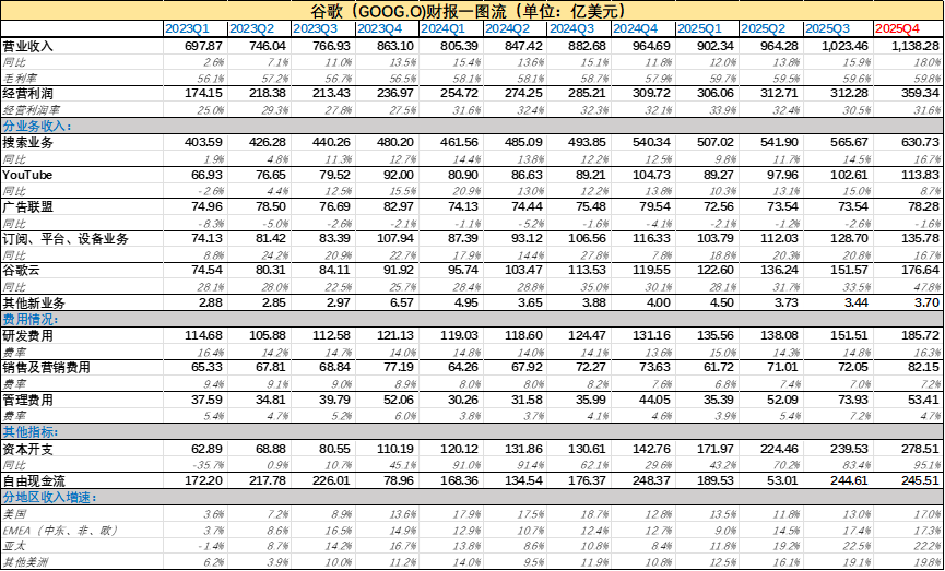 图:谷歌财报汇总,来源:企业财报,锦缎研究院整理,下同