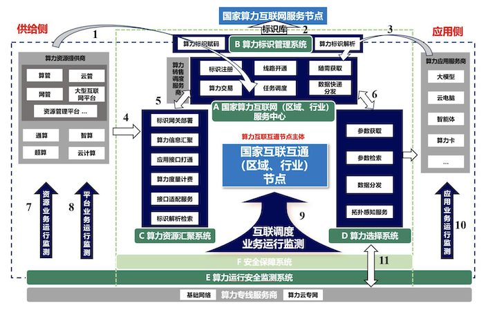 国家算力互联互通节点体系由“1”个国家算力互联网服务节点(已建成发布)及“M”个区域、“N”个行业节点组成。国家算力互联互通节点体系建设目标,是区域、行业节点分别面向算力需求旺盛的地区、重点行业,建设算力供需对接体系机制,实现不同区域、主体、架构的算力资源标准化互联和高效流动应用,提升整体算力水平。