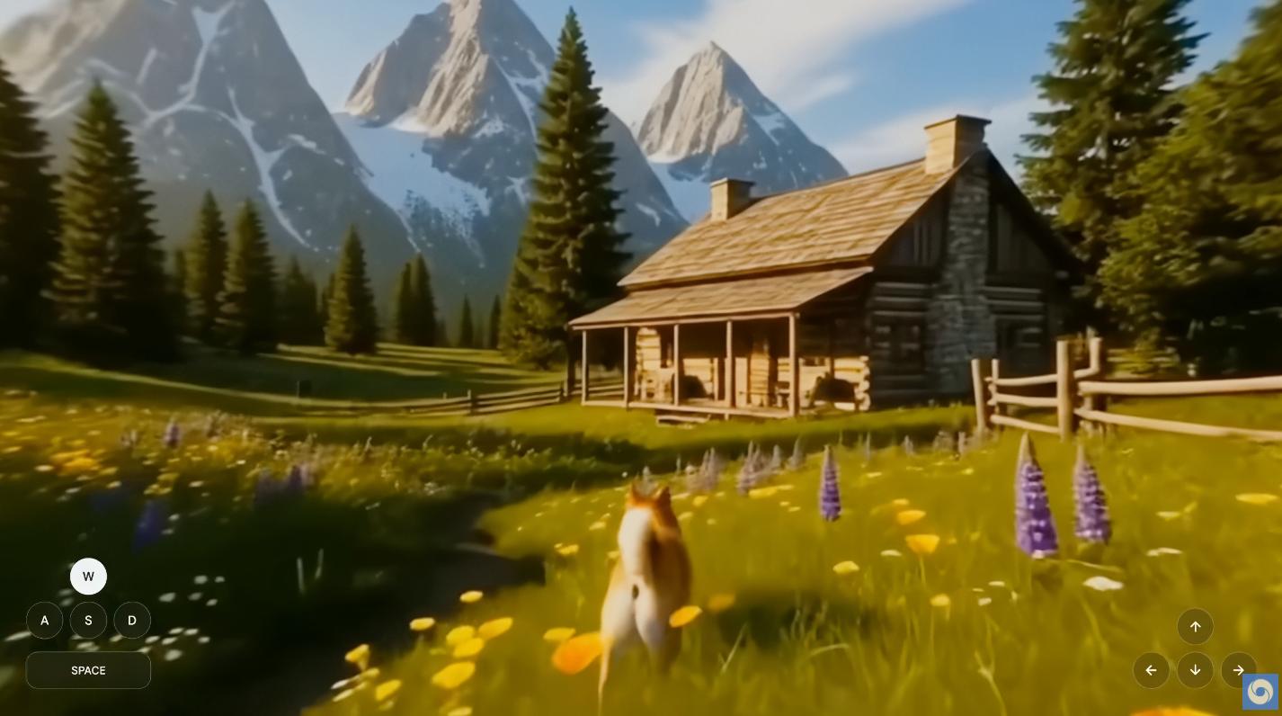 但在Project Genie的世界里,AI是有猜错的时候。这就导致你控制的角色可能会突然穿墙而过,或者跳着跳着突然融化进了地板里,甚至有时候走着走着,身后突然长出一棵树来。