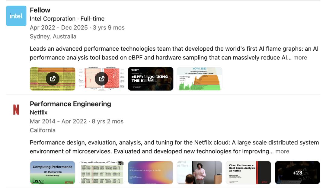 早年(2001-2014年)在Sun Microsystems和Joyent任职的十几年里,他就已经是DTraceToolkit的核心开发者,那时候就已经奠定了自己在动态追踪领域的元老地位。