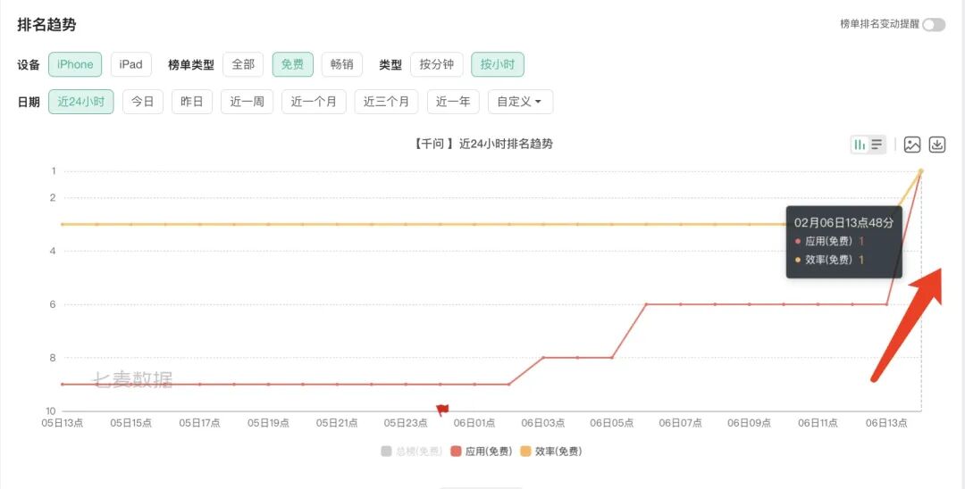 元宝当时也是如此。根据七麦数据监测,元宝在2月1日上线“瓜分十亿”活动后,排名从免费应用榜Top4开始攀升,在当日下午 15 点左右,上升到了Top1位置,并一直霸榜至2月6日中午。