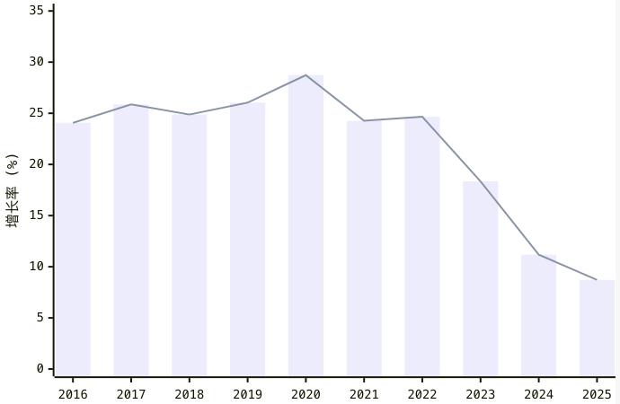 2025年,美国CRM市场进入增长放缓的平台期。行业龙头Salesforce自2024年起,营收已结束多年双位数增长,2025年更进一步回落至约8.7%。背后原因是传统CRM订阅模式趋于成熟,新一代AI产品尽管同比增长超过120%,但整体规模偏小,预计到2027财年才会对收入形成显著