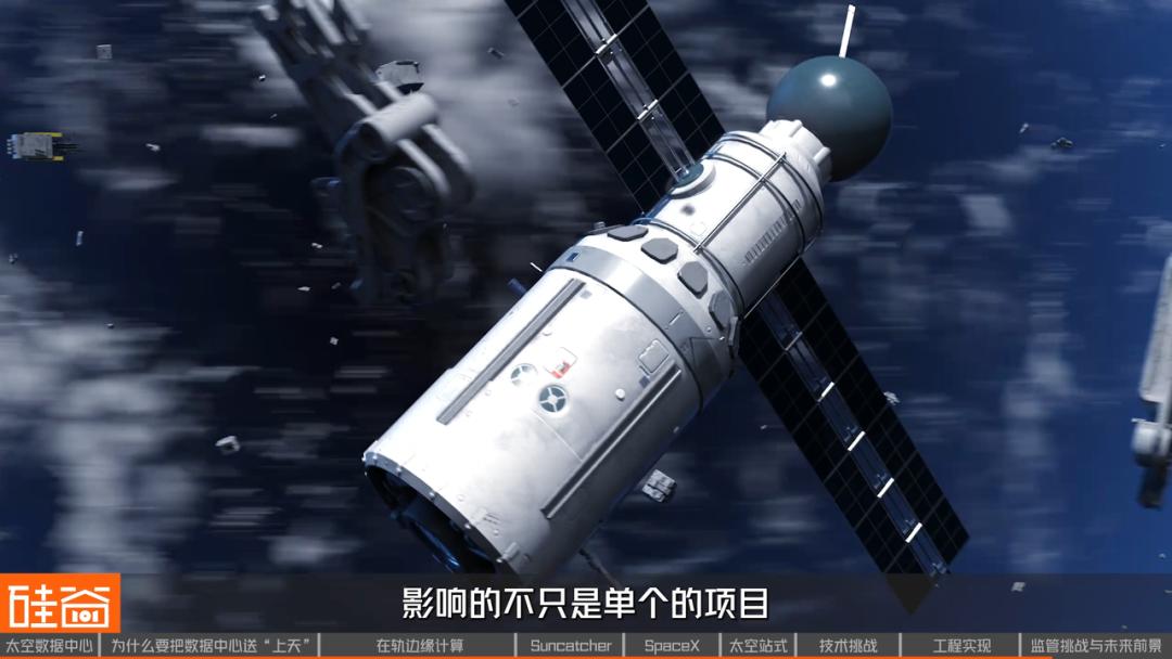 其次是碰撞风险与太空垃圾。 高功耗算力卫星一旦失效,如果不能及时、可控地离轨,便可能成为长期存在的碎片源,而碎片一旦产生,会在轨道上以极高速度传播风险——这影响的不仅只是单个项目, 更是整个轨道环境的长期安全。