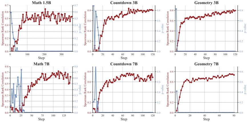 △ 图 4:在所有实验中,相关性在训练初期迅速攀升并稳定在0.5以上的高水平,证明了MoPPS预测的准确性。