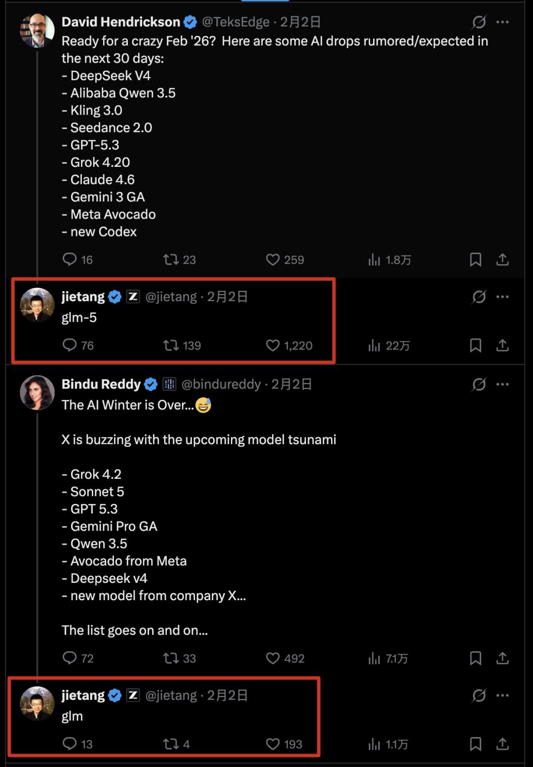 唐杰在内部信中已明确预告GLM-5即将发布,多方信息指向2026年2月中旬,即春节前后。