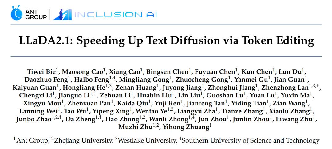 2025年,蚂蚁集团资深技术专家赵俊博曾经带着LLaDA2.0登上量子位MEET大会的舞台,而如今,他们的最新版本LLaDA2.1来了,蚂蚁技术研究院重磅开源!