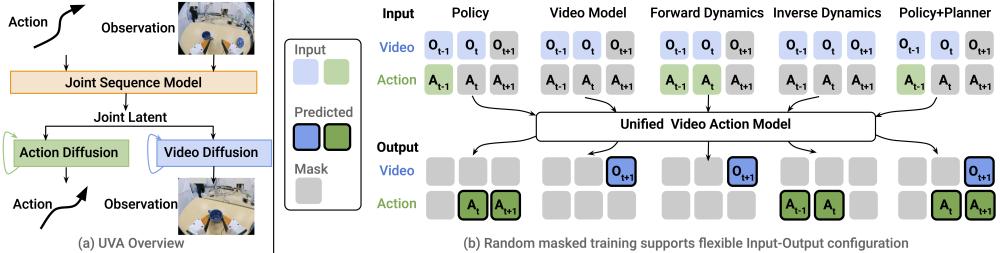 以上两种分阶段的模式,最大的问题就是动作和视频生成对不齐。动作那块要求特别准确,但视频生成很难完美。一旦它产生的未来画面带有微小的像素伪影或物理幻觉,那不管是IDM或者点追踪,都直接懵圈,成倍放大错误。视频里机器人的手指位置偏了一微米,现实中机器人就根本什么都抓不住了。鲁棒性极差。