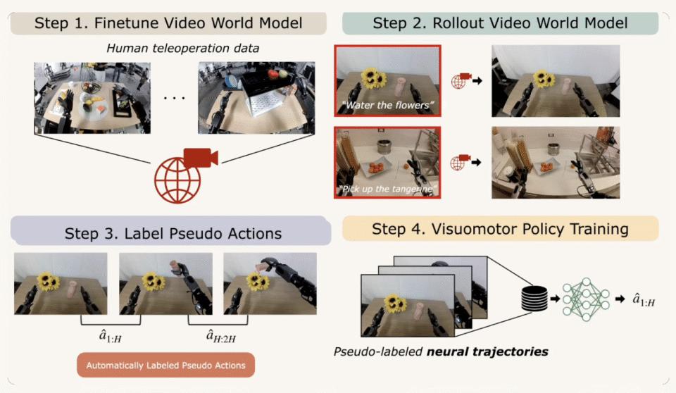 即使强大如斯,视频生成之前仍然主要被用在给VLA提供模拟数据,而不是整合进机器人的工作流中。