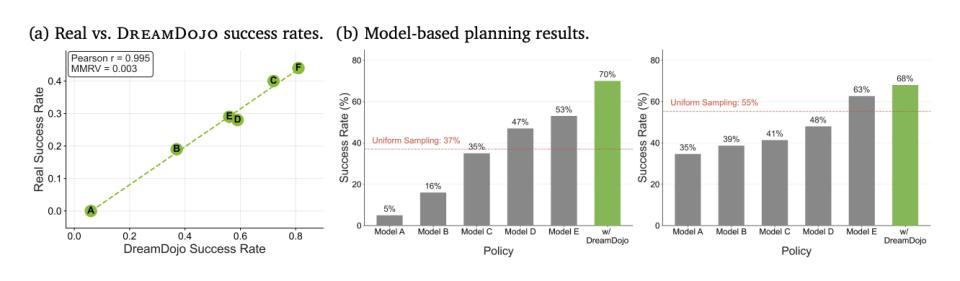 这就是另一篇论文中 Dream Dojo 的作用。DreamZero 造出了引擎,DreamDojo 炼出了持续优化这个引擎的燃油。