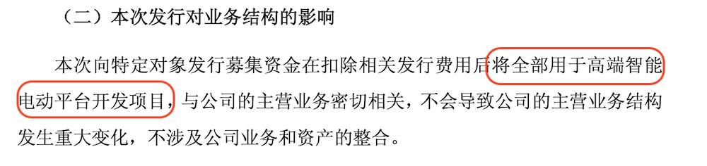 ▲所得资金用于高端智能电动平台开发项目