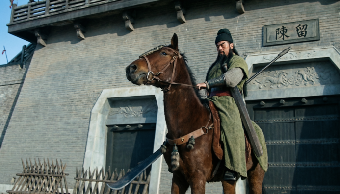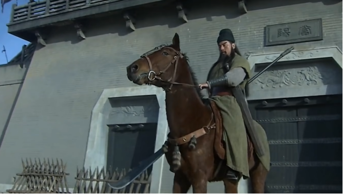 这是关羽温酒斩华雄时出战的经典场面。