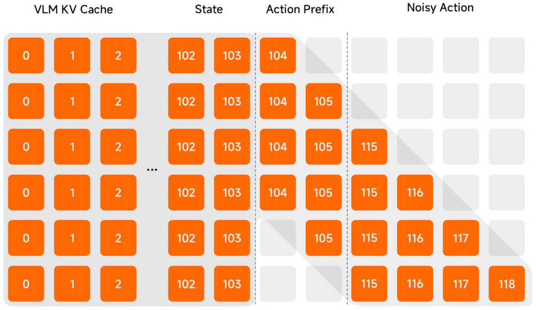 Λ-shape Attention Mask:通过特殊的注意力掩码,强制模型更关注当前的视觉反馈,而不是沉溺于历史惯性。这让机器人在面对环境突发变化时,能够展现出极强的反应性物理智能。