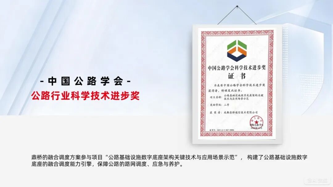 “公路行业科学技术进步奖”的获得,精准印证了鼎桥深度融入垂直行业、以场景驱动创新的能力。面对公路交通这一系统复杂、要求严苛、协同链条极长的行业领域,鼎桥并未停留在技术输出层面,而是深入业务流程,直面系统割裂、数据孤岛、协同效率低下等核心挑战。