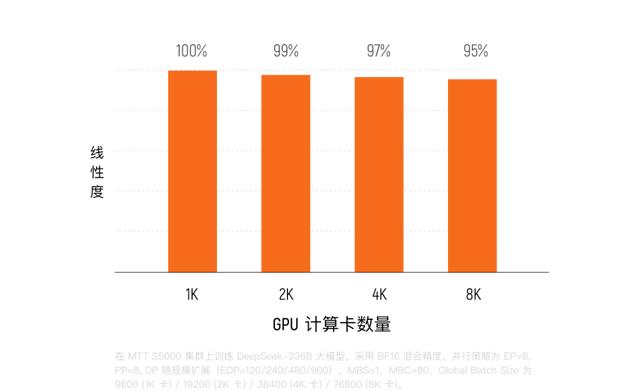 此外,MTT S5000对FP8到FP64全精度计算的完整支持,特别是硬件级FP8 Tensor Core的引入,成为了其性能跃升的核心引擎。据接近测试项目的行业人士透露,MTT S5000在产品精度层面已超越H100,技术特性更逼近英伟达下一代Blackwell架构。