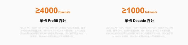 在推理端,S5000的表现同样刷新了国产GPU的纪录。2025年12月,摩尔线程联合硅基流动,针对DeepSeek-V3 671B满血版进行了深度适配与性能测试。得益于S5000原生FP8能力与SGLang-MUSA推理引擎的深度优化,在PD分离的部署中,单卡Prefill(预填充)吞吐量超过4000 tokens/s,Decode(解码)吞吐量超过1000 tokens/s。这一成绩不仅大幅降低了显存占用,更在高并发场景下保证了极低的响应延迟。配合首创的细粒度重计算技术,S5000将开销降至原有的1/4,全方位提升了系统吞吐量,证明了其作为高性能在线推理服务底座的卓越实力。