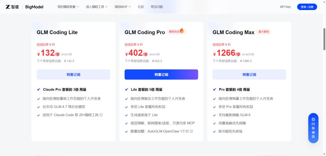 - GLM Coding Max:600元/季