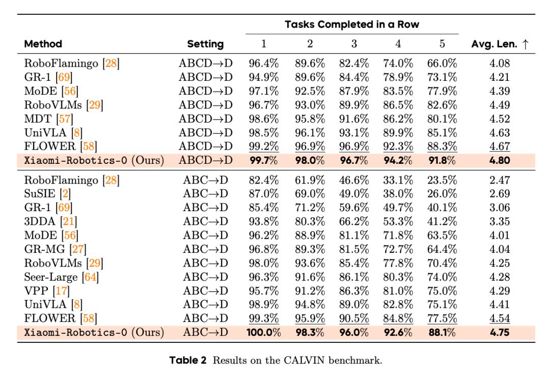 首先,我们来看Xiaomi-Robotics-0在VLA仿真benchmark上的成绩。