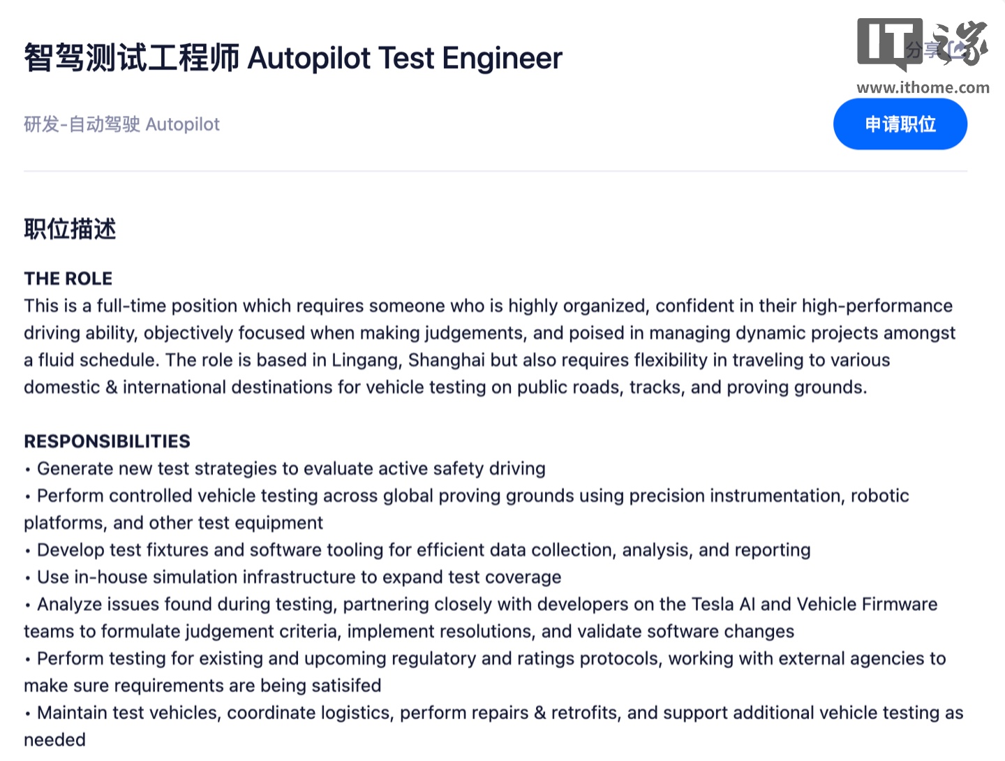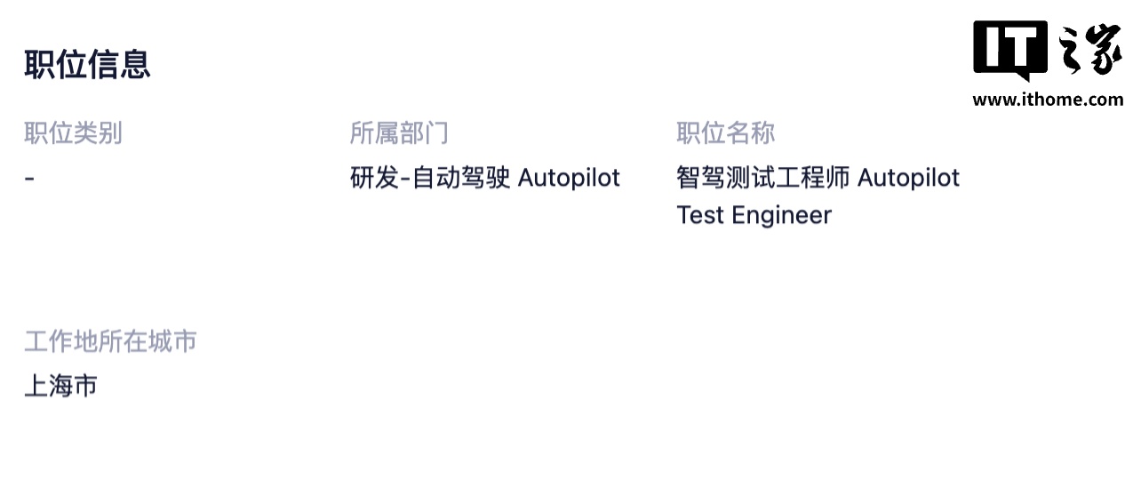 IT之家 2 月 13 日消息,特斯拉今天发布招聘启事,招聘智驾测试工程师。