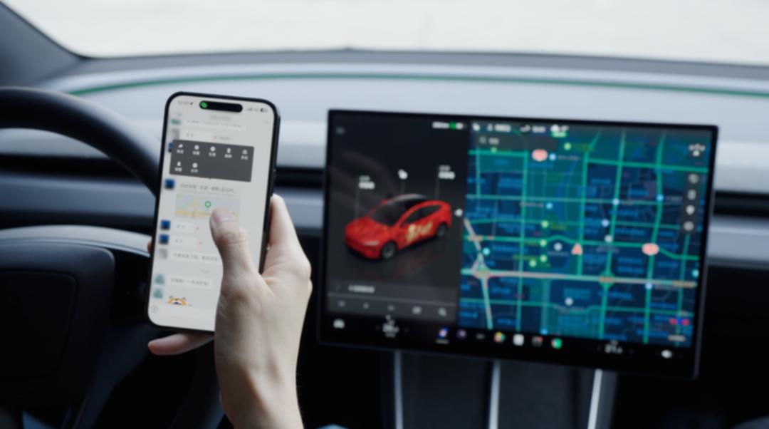 用户可以将微信对话中的位置卡片,或来自腾讯地图、百度地图、高德地图等多种来源的POI信息,一键分享到特斯拉车机,并直接发起导航。