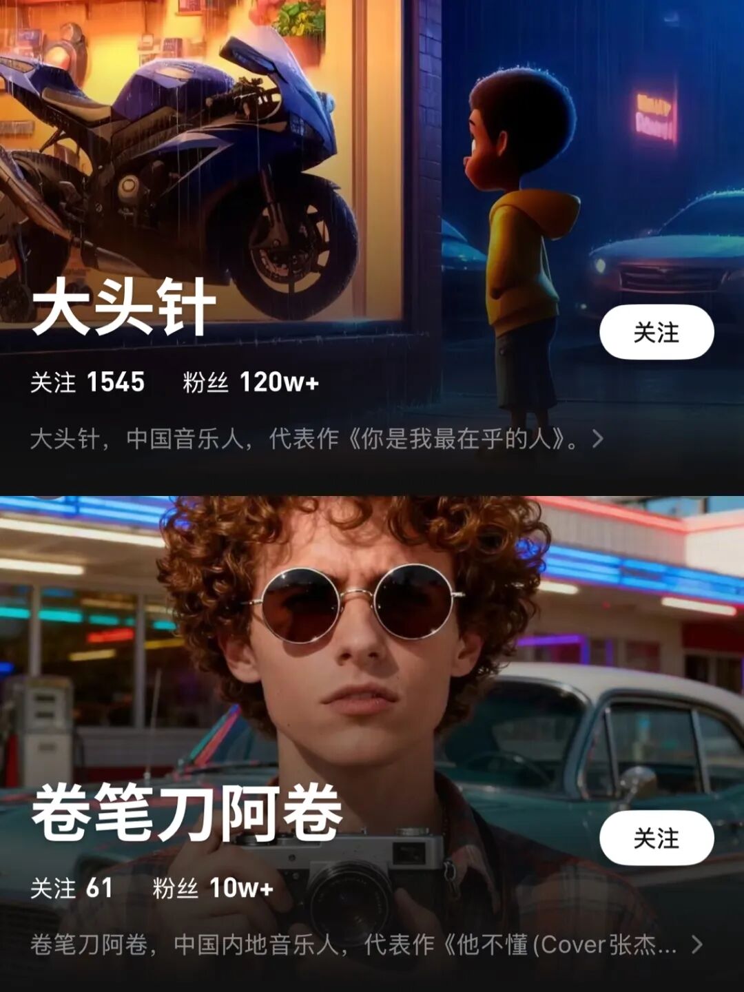 相比传统平台,汽水音乐依托抖音的流量分发机制与精准的推荐算法,一批AI歌手和AI音乐创作者得以迅速积累用户基础,例如“大头针”“卷笔刀”等AI歌手,借助抖音与汽水音乐的协同分发,仅凭AI生成内容便成功吸引超过120万粉丝。