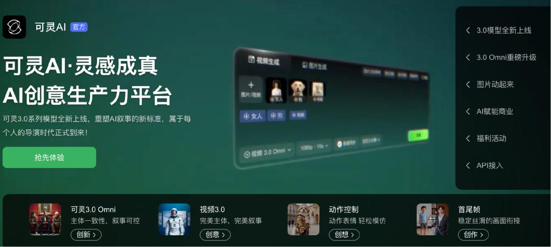 在大厂的产品中,可灵是拥有相对领先的视频生成模型。自2024年6月上线以来,可灵实现超30次迭代,其2.0版本推出Multi-modal Visual Language交互框架,允许用户结合图像、视频片段、文字,甚至声音输入,实现多维度创意表达。